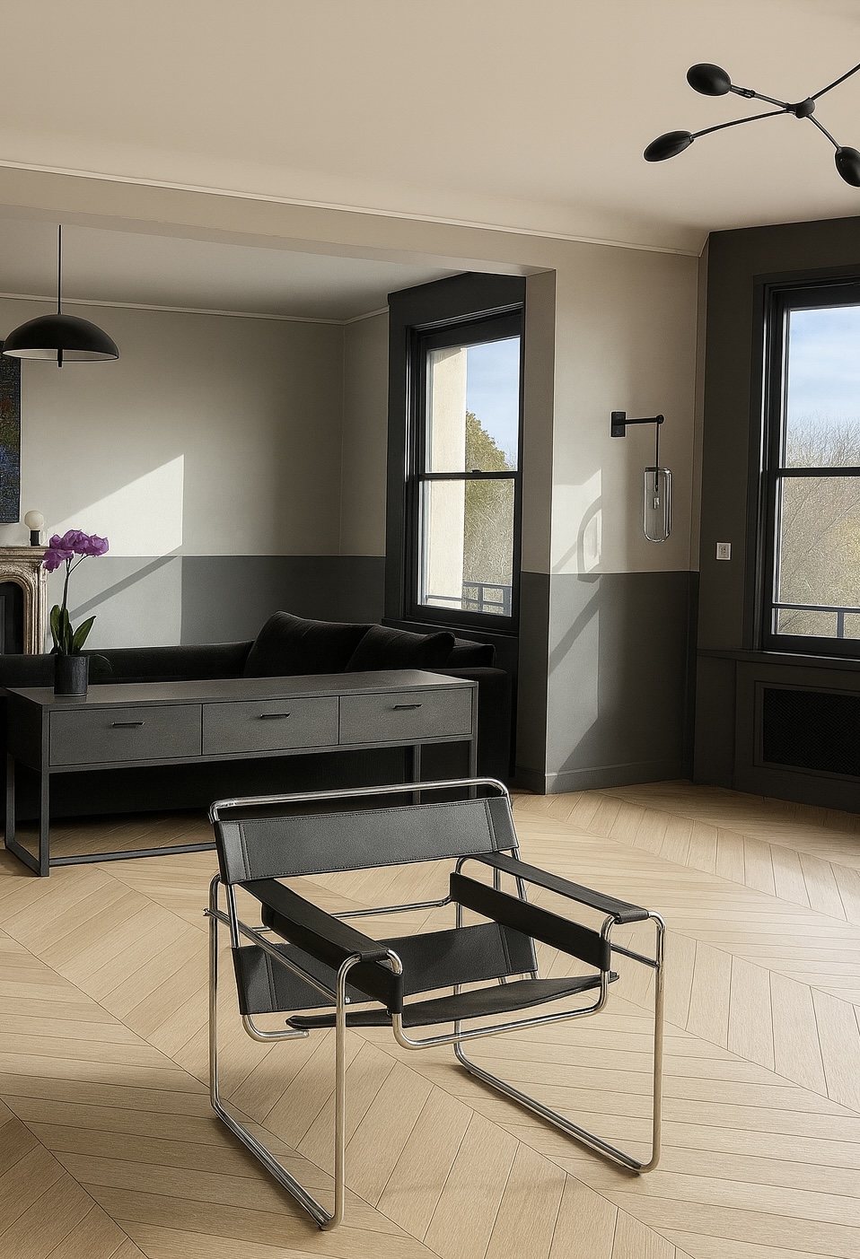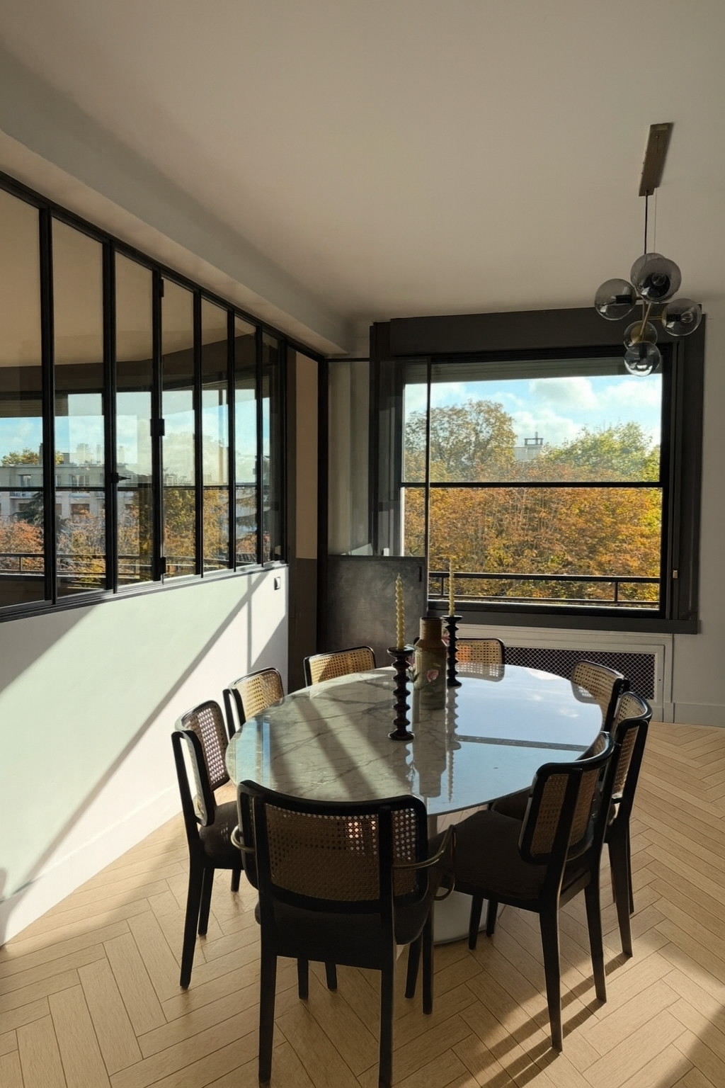 Transformation complète d’un appartement de 192 m2 des années 30. Le plan a été entièrement redessiné pour ouvrir les volumes et créer une grande cuisine dînatoire baignée de lumière, en lien direct avec le salon via une verrière atelier. Ce nouvel espace de vie de 70 M2 devient le coeur de l’appartement, convivial et fluide. L’agencement a également permis d’intégrer quatre chambres dont deux avec salle de bain privative. Côté décoration, le parti pris a été d’allier modernité et charme de l’ancien, en insufflant un esprit loft dans la pièce principale.